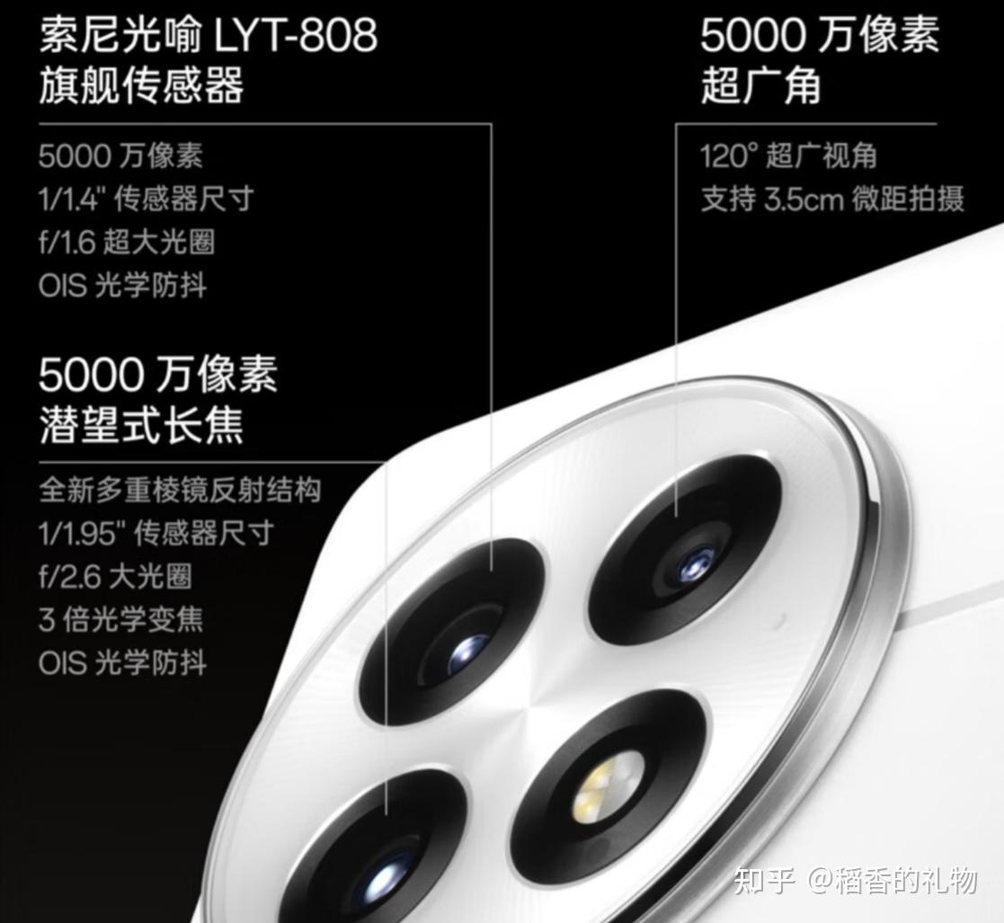 主摄是索尼光喻LYT-808,支持OIS光学防抖,F1.6光圈。还有120度超广角,可以3.5厘米微距拍摄。加上潜望式长焦,f2.6光驱昂,OIS防抖,支持3倍光学防抖。它可以抓拍,还有哈苏人像,以及实况照片。