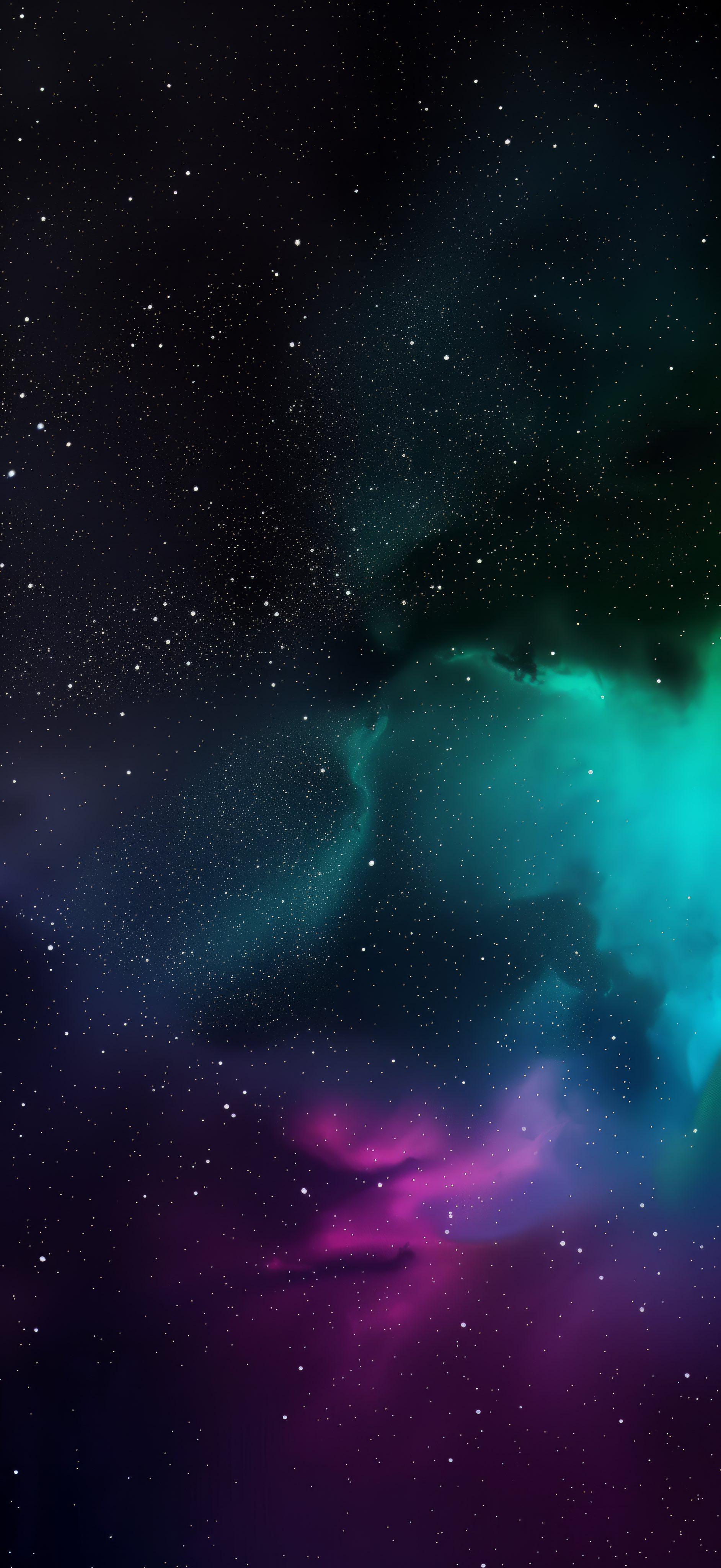 深邃的太空,充满了星星和神秘的色彩,如紫色、绿色和蓝色的光辉,营造出一个梦幻般的宇宙氛围。
