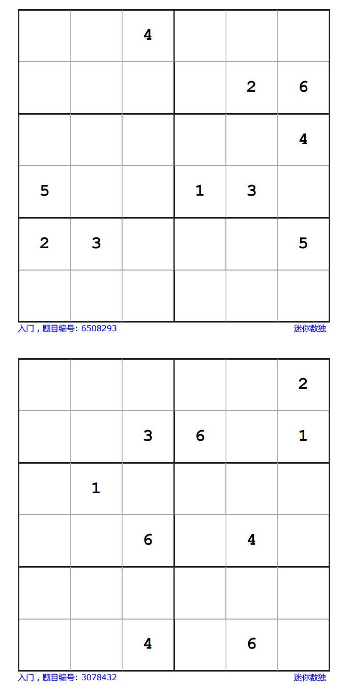 六宫格数独的解题过程就是在6×6的方格内填入1-6的数字,要求每行每列和每组(粗线方框内的2×3的格子)的