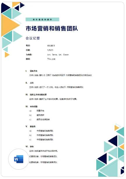 7、使用这款已格式化的纪要模板保持会议纪要井然有序