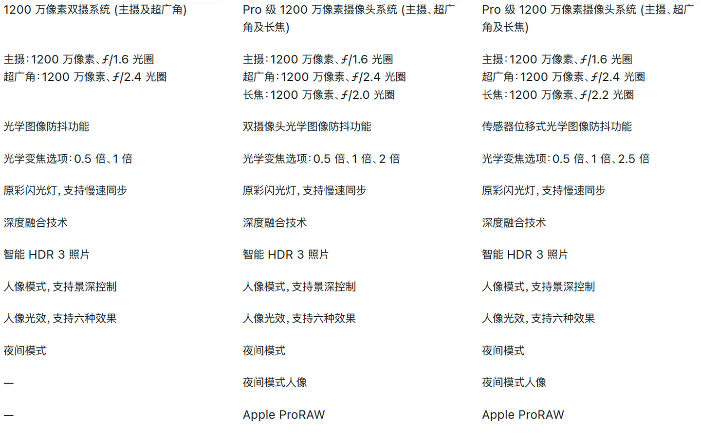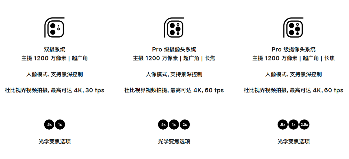 要是预算充足考虑 12 Pro Max 和 12 Pro,它们提升了激光雷达扫描仪(实用度一般)、支持 PRORAWs 输出、60 帧杜比视界 HDR 视频拍摄(对专业摄影友好)、5G 信号增强、续航提升、主摄传感器位移式防抖、变焦加强,但价格也更贵,对大部分同学来说有点性能过剩。