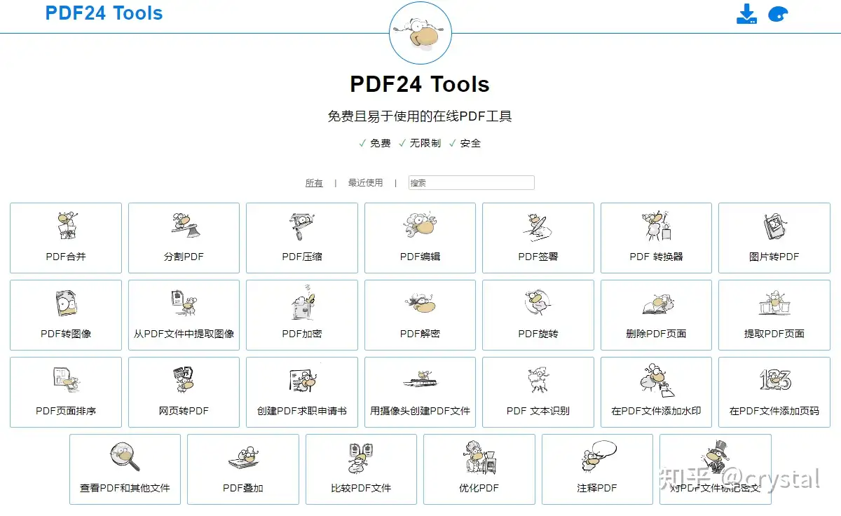 下面三个网站集合了很多 PDF 处理工具,支持格式转换、PDF 编辑、制作、合并、加水印、OCR 识别、压缩、签名、加密解密、旋转等,功能非常丰富。