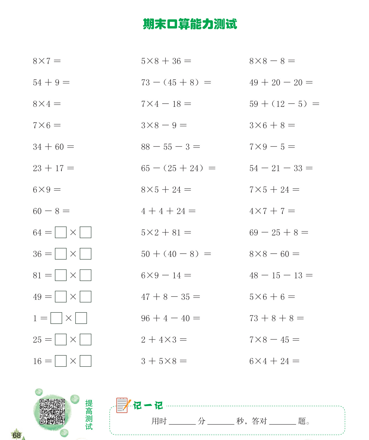 二年级下册数学口算题: