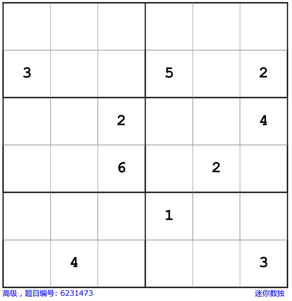 六宫数独的解题过程就是在6×6的方格内填入1-6的数字,要求每行每列和每组(粗线方框内的2×3的格子)的数字不能重复。
