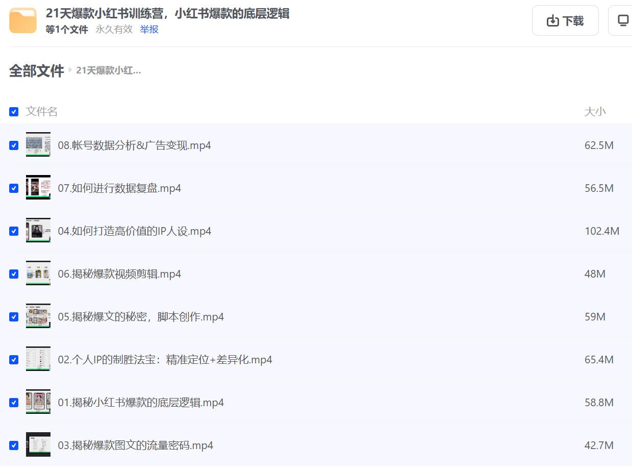21天爆款小红书训练营,小红书爆款的底层逻辑,夸克 网盘资源下载。