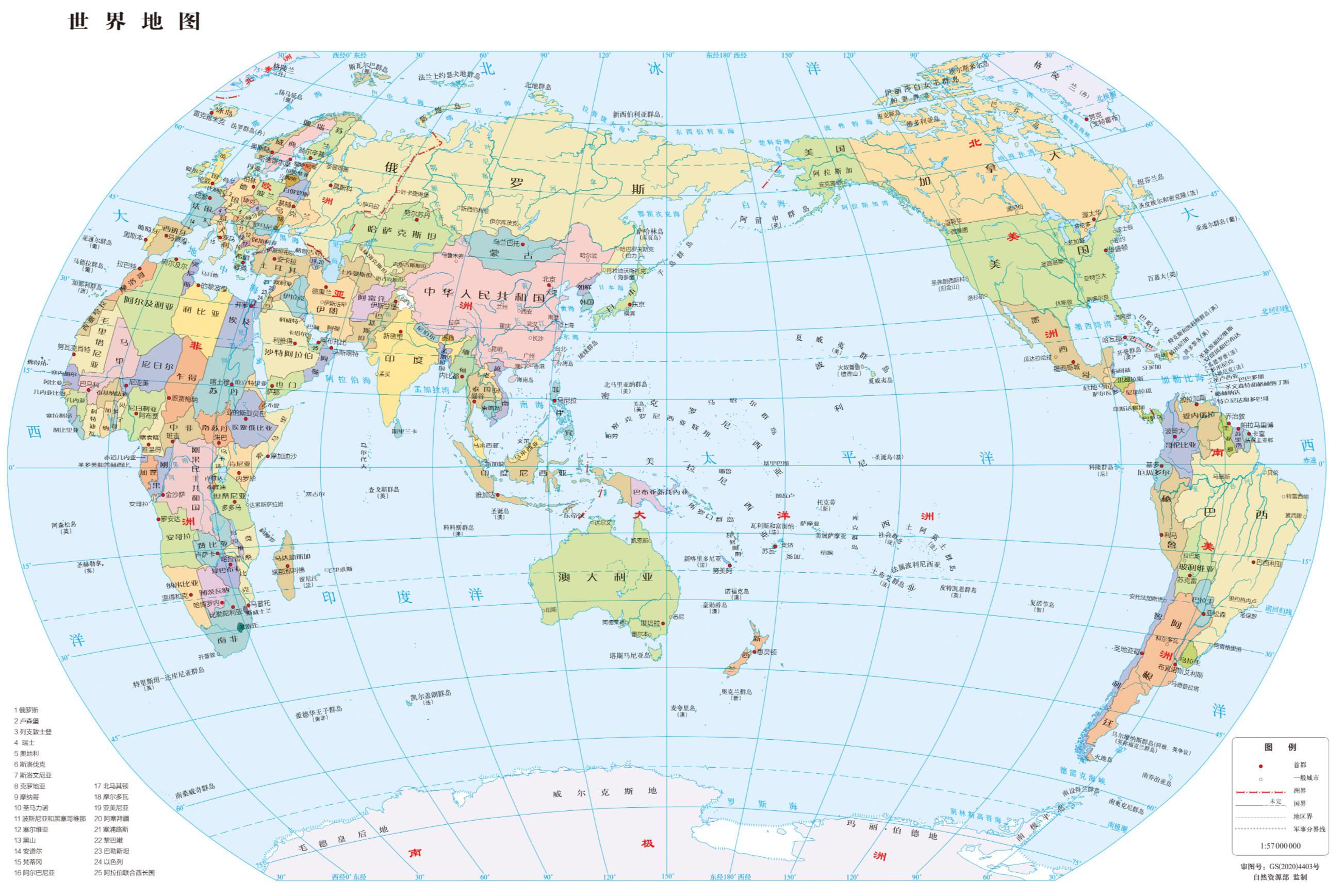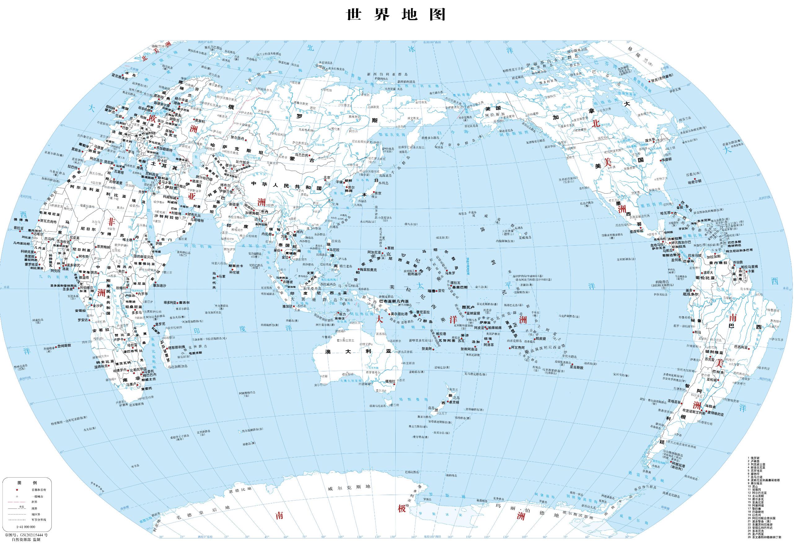 3、世界地图 1:4100万 对开,基础要素版 线划一